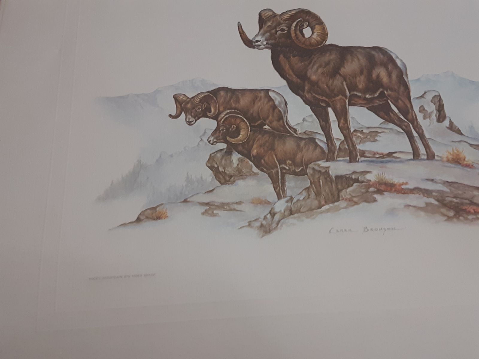 These prints are a hunter's or fisherman's dream. Printed in 1969, artist is Clark Bronson. Still in the large folder they came in. Maybe a little dirty spots on the outside of folder but inside they look almost new. They are from Chevrolet promo series. 16"x13" and look nearly new. Printed on heavy paper that could be linen stock. I will grade these as good, only because the folder has spots on it. The other ones I have seen,that's being sold, are wrinkled, dirty, or have been rolled up. These pictures look the same as the day they were delivered. Thanks for looking, offers are welcomed and considered, and I will bundle with other items.