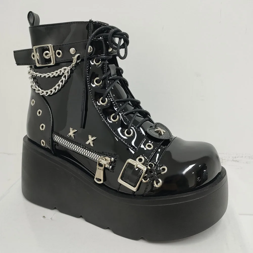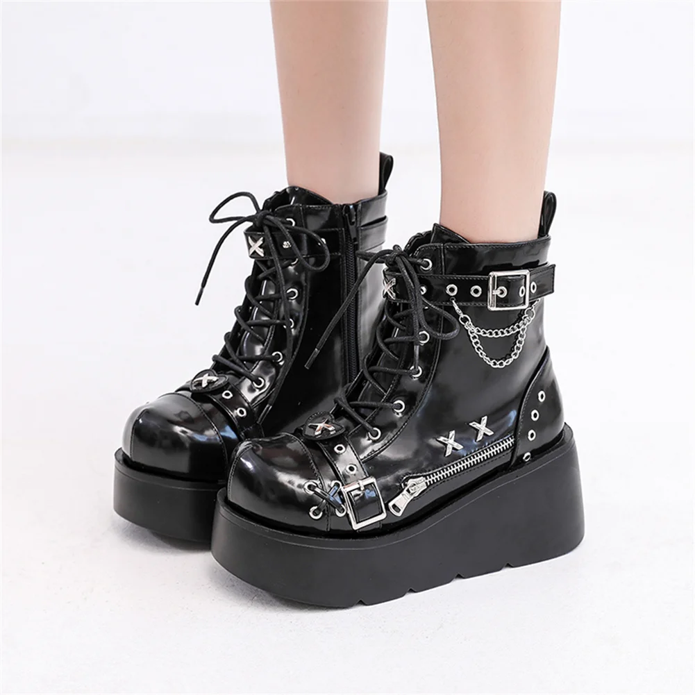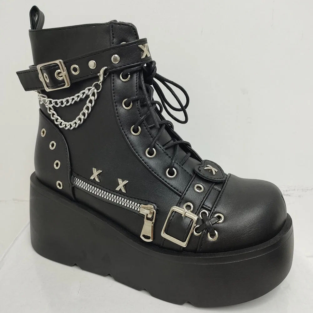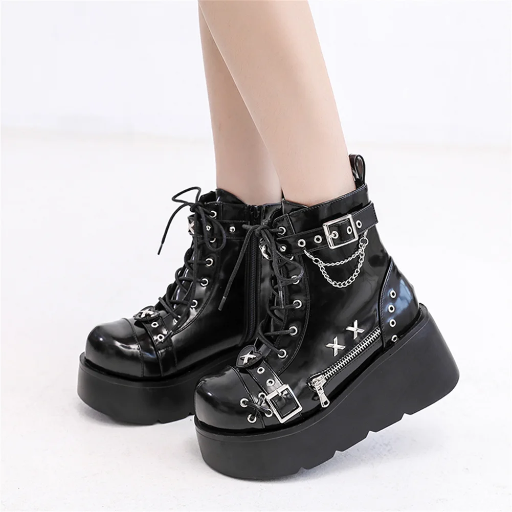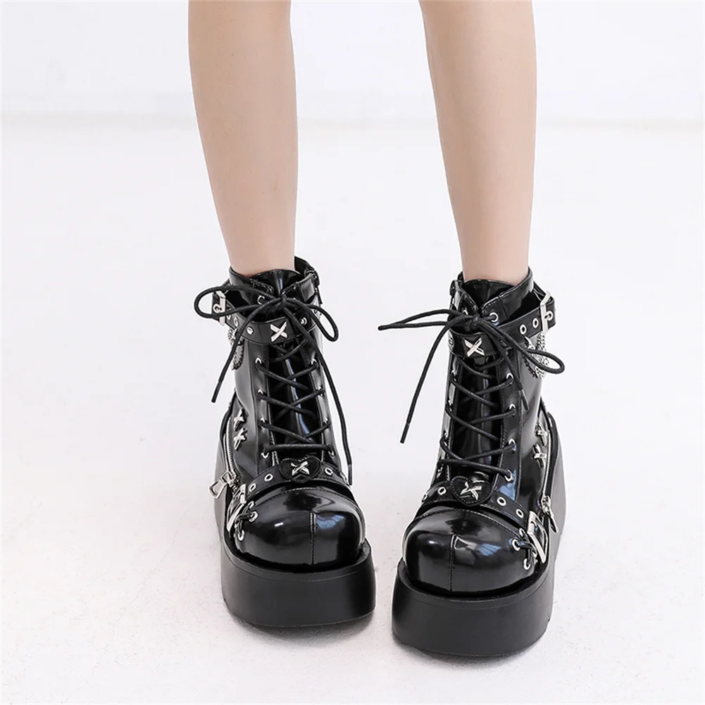 Brand New Ladies Goth Platform Ankle Boots Fashion Buckle Zip Rivet Punk Wedges High Heels Womens Boots Party Street Woman Shoes