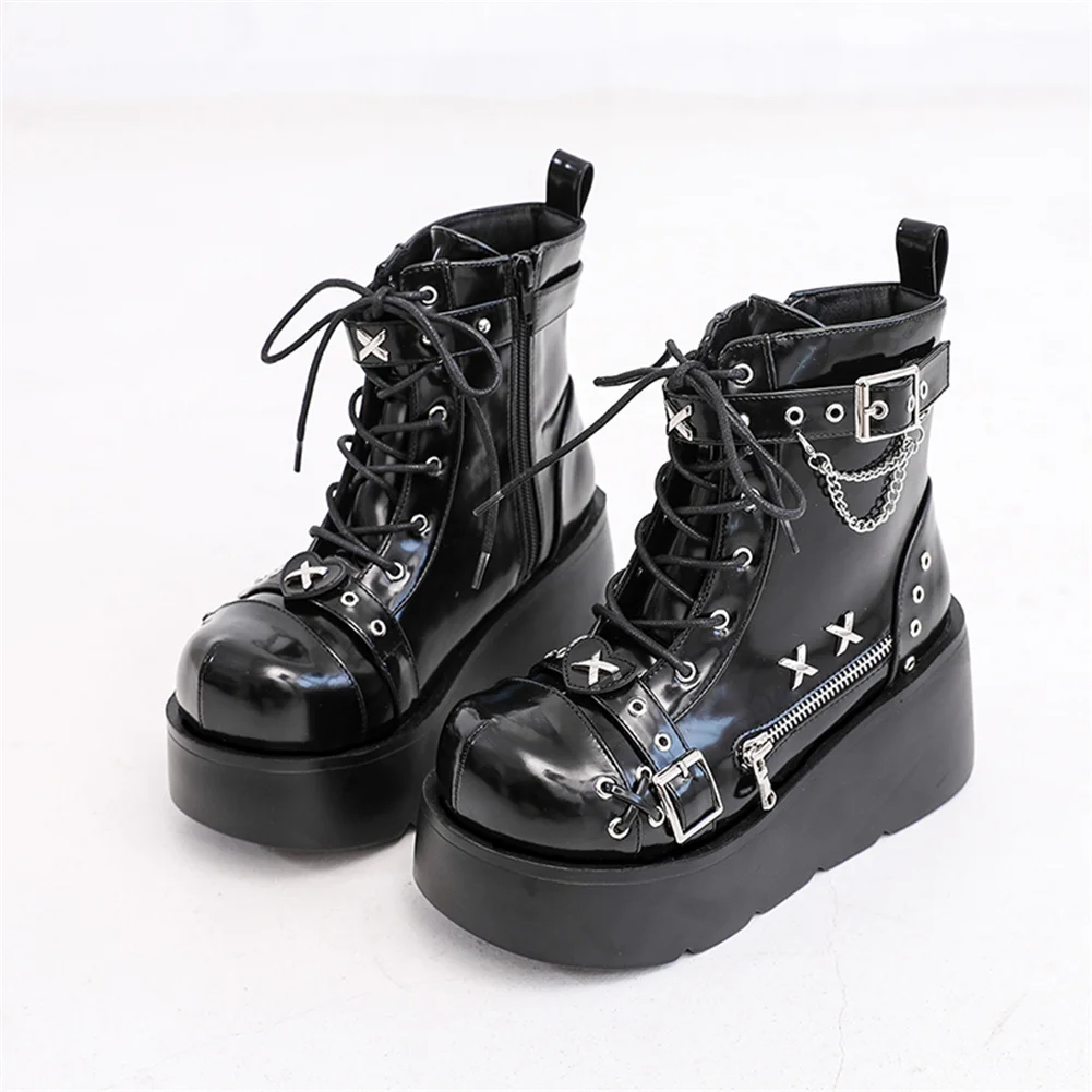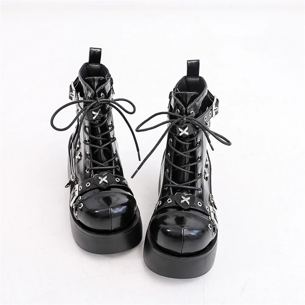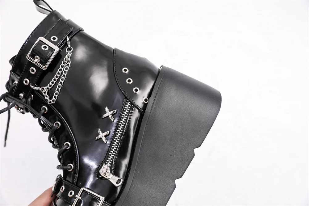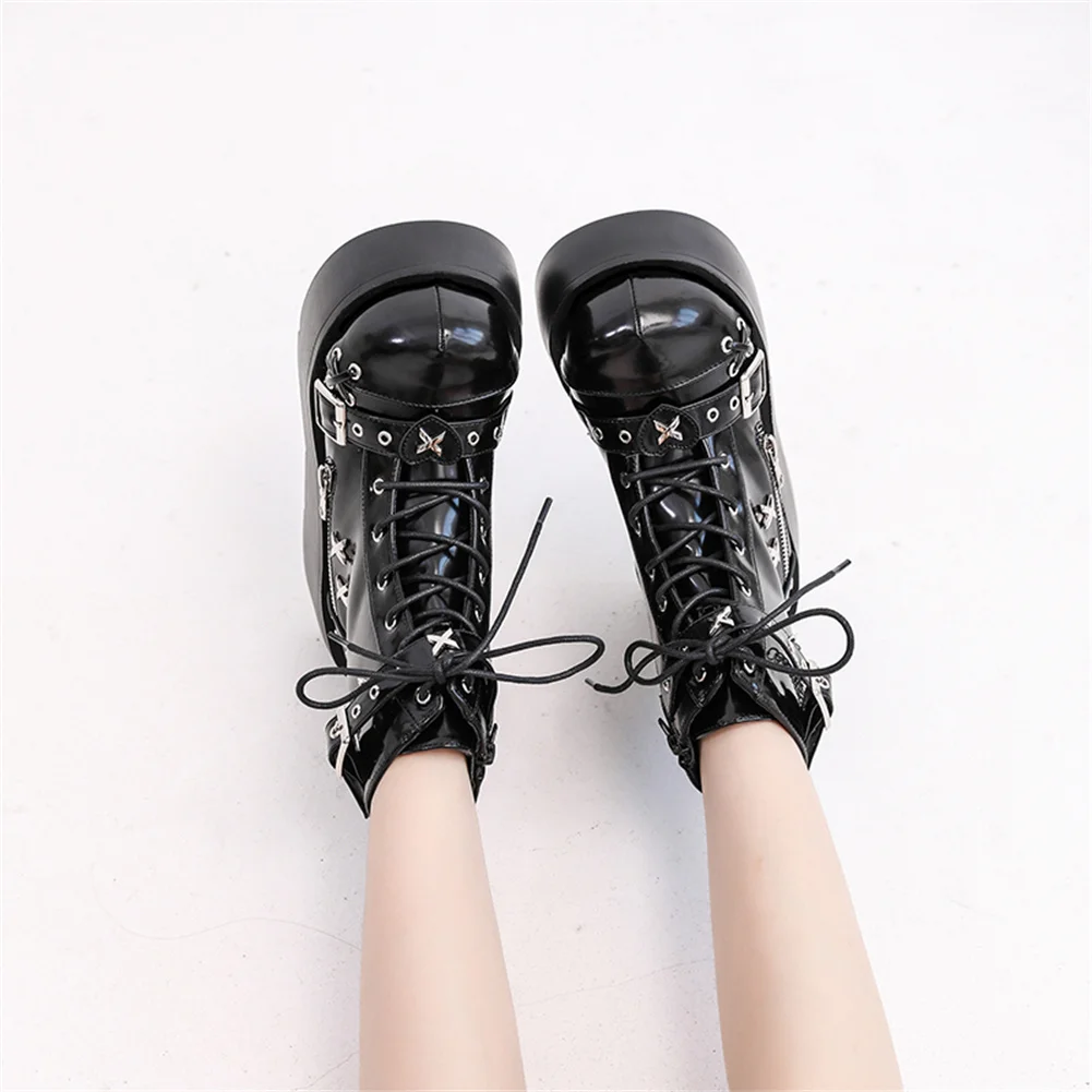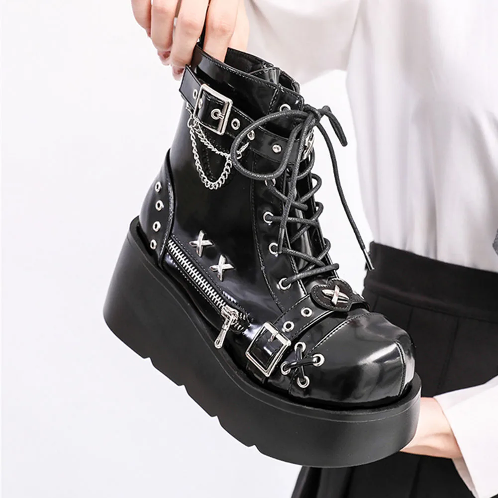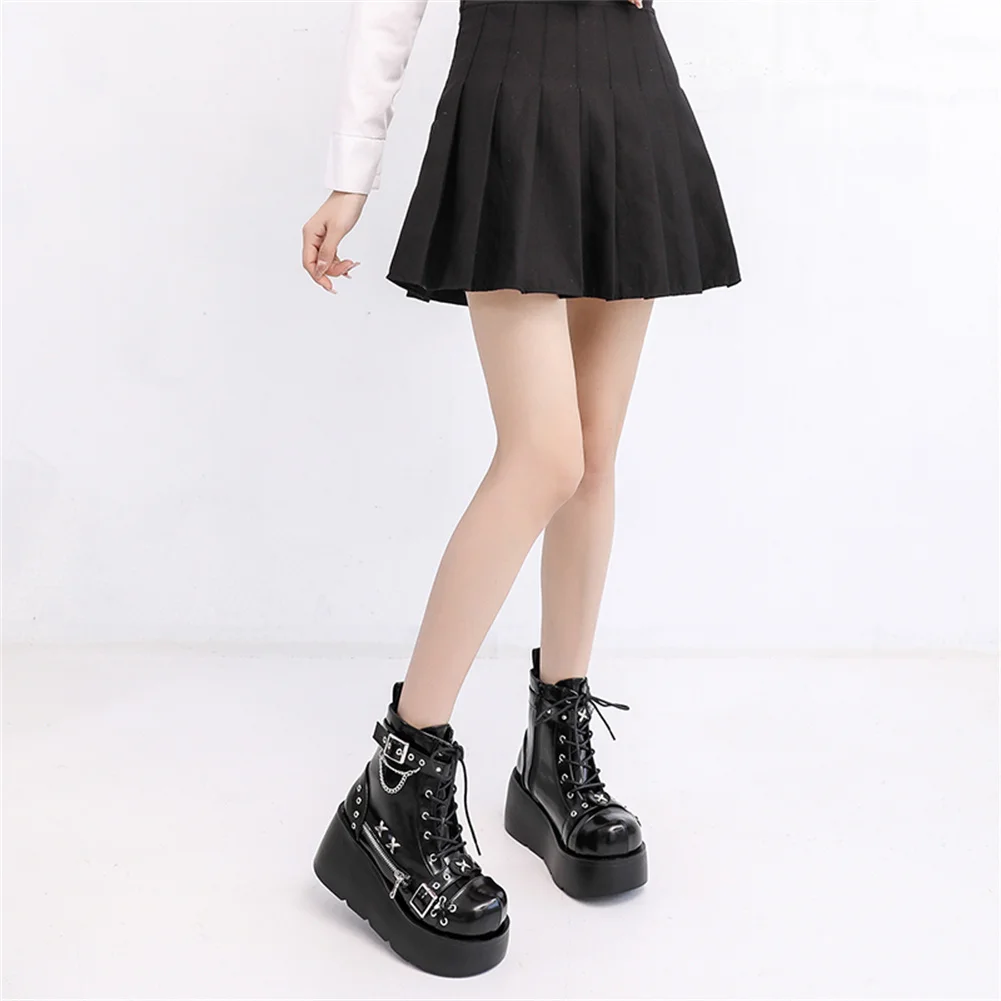 Brand New Ladies Goth Platform Ankle Boots Fashion Buckle Zip Rivet Punk Wedges High Heels Womens Boots Party Street Woman Shoes