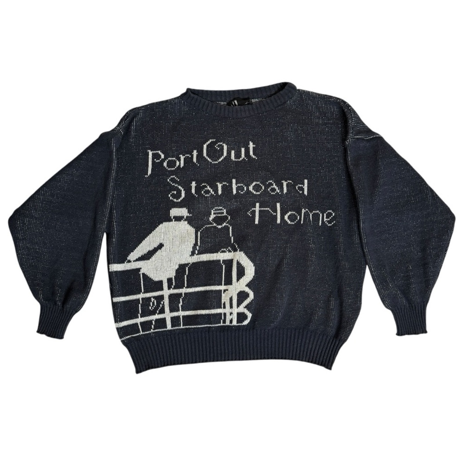 Vintage Dunhill London Knit Port Out Starboard Home Sweater Navy Blue Mens Small
